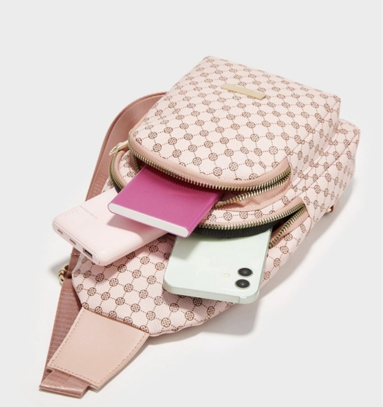 Alliant style et fonctionnalité, cette bandoulière compacte est l’accessoire idéal pour vos déplacements du quotidien. Son design raffiné est sublimé par un motif discret et répétitif, apportant une touche chic et moderne. Conçue pour offrir un rangement optimisé, elle dispose de 3 compartiments zippés permettant de transporter facilement votre smartphone, une batterie externe, un petit carnet et vos essentiels personnels.