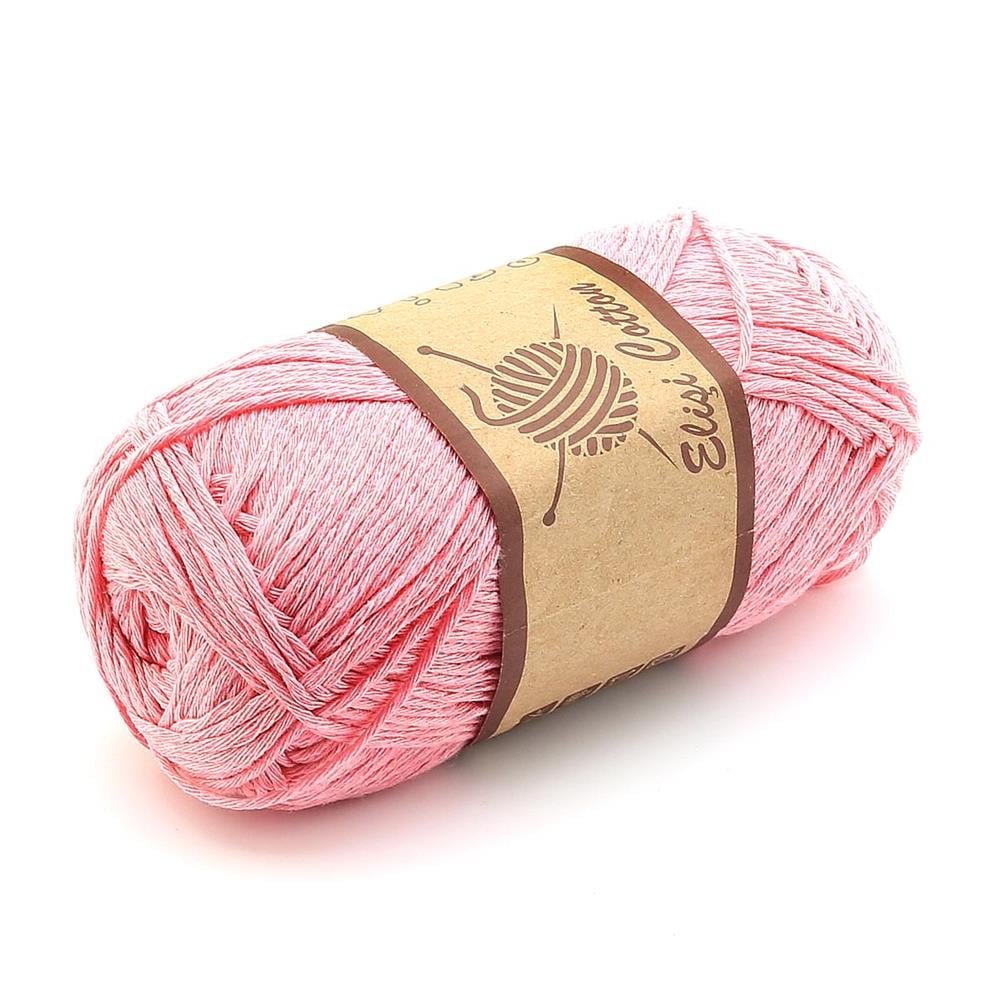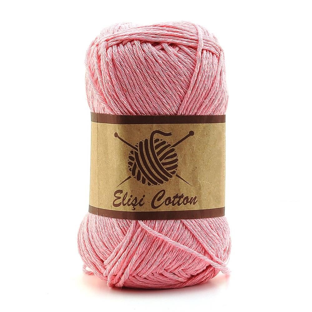 Elişi Cotton est un fil à tricoter à la main de couleur rose, fabriqué à partir de coton 100% régénéré (recyclé), disponible en pelotes de 100 grammes (environ 200 mètres).