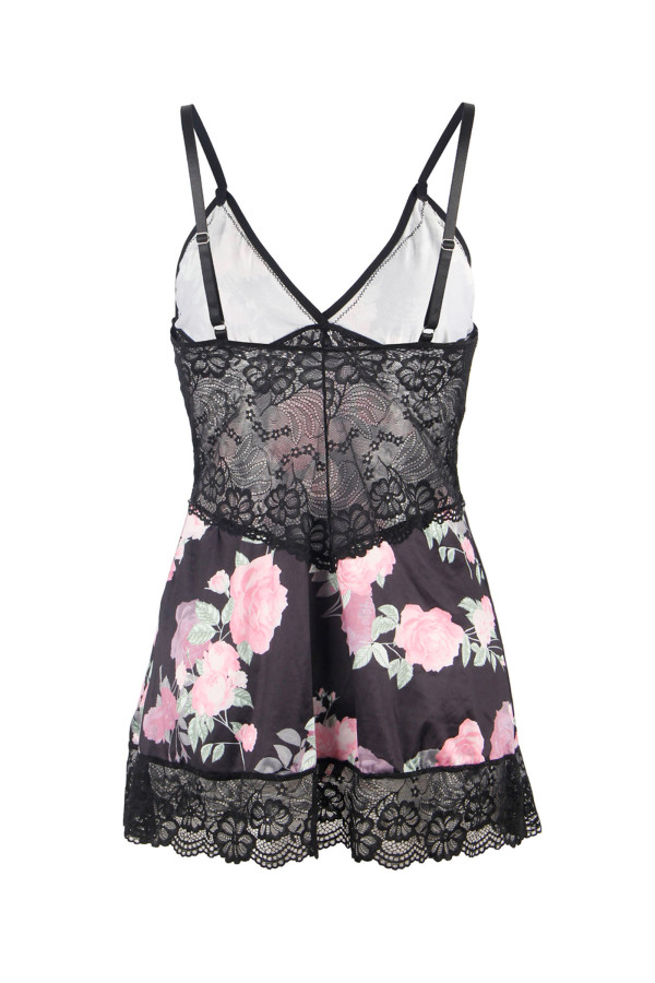 Sublimez les soirée avec la nuisette satiné motif à fleurs et string signé Paris Hollywood !Vous apprécierez la qualité du tissu satiné ainsi que ses finitions sensuelles comme les empiècements en dentelle.