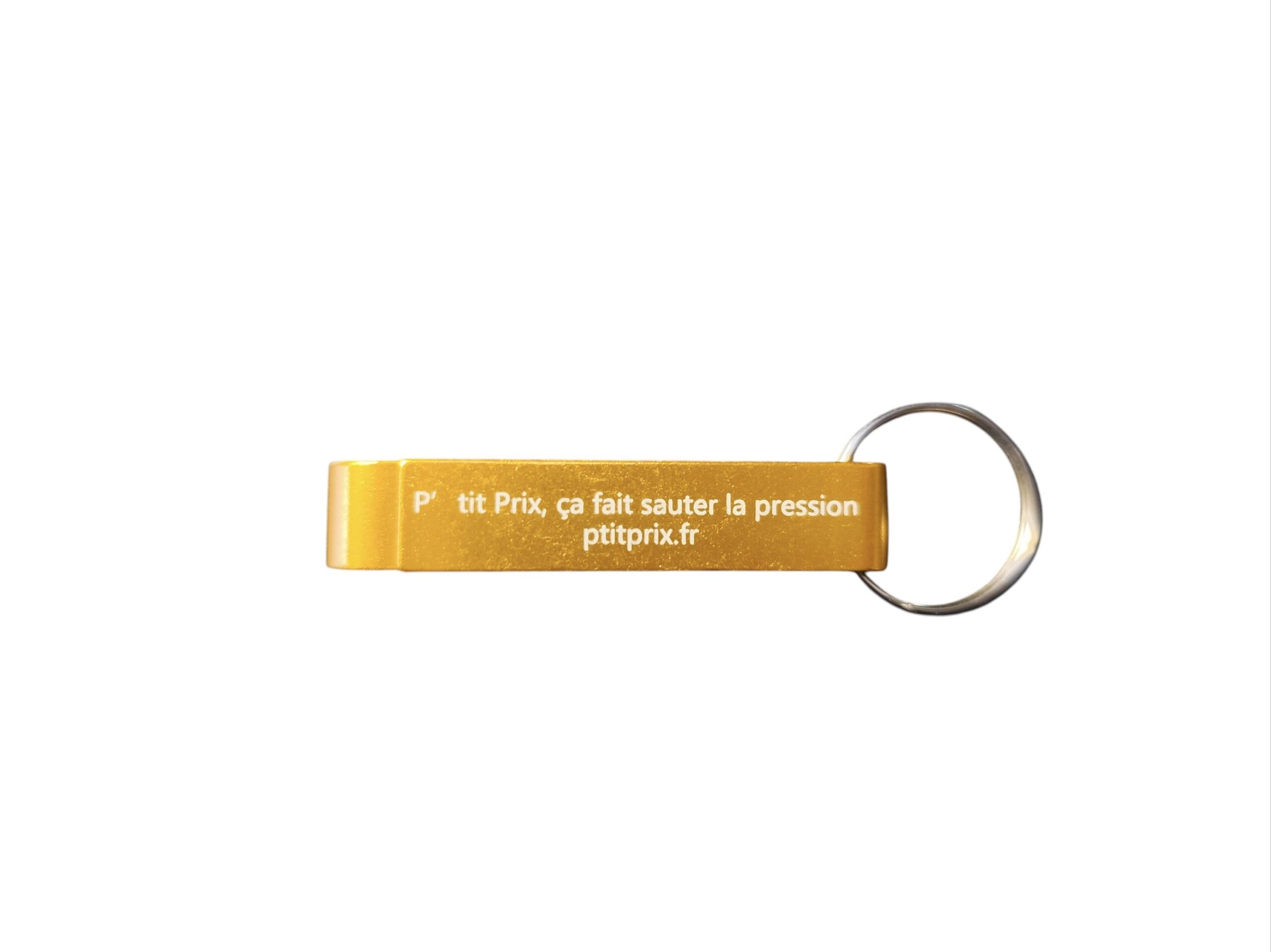 Porte clé décapsuleur “P’tit Prix fait sauter la pression”